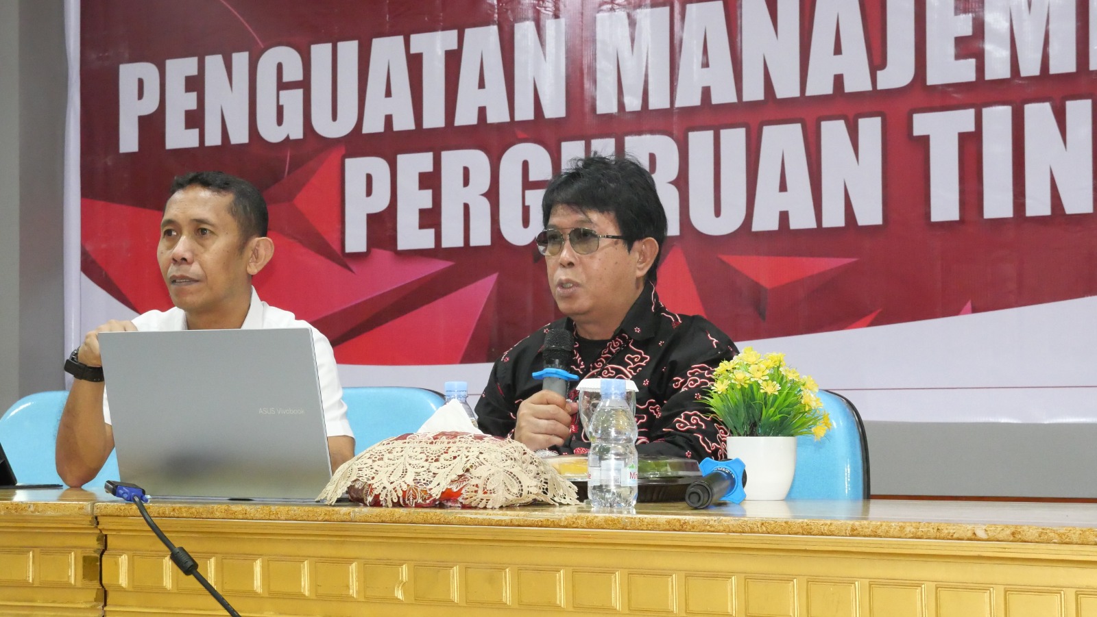 Sharing penguatan manajemen resiko, menghadirkan narasumber dari Universitas Tanjung Pura (UNTAN) Prof. Dr. Witarsa, M. Si., CRA., CRP., CRMP., CFrA., CFA yang dipandu oleh Kepala SPI Unkhair, Dr. Irfan Zam Zam, SE., M. Si., Ak.