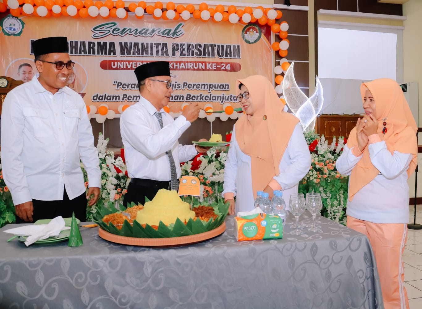 UNKHAIR-Menyambut Hari Ulang Tahun DWP Ke-24 Tahun 2023, Dharma Wanita Persatuan (DWP) Universitas Khairun (Unkhair), Ternate menyelenggarakan pertemuan rutin tahunan, sekaligus cegah kekerasan seksual di lingkungan Kampus, dan pemotongan nasi tumpeng.