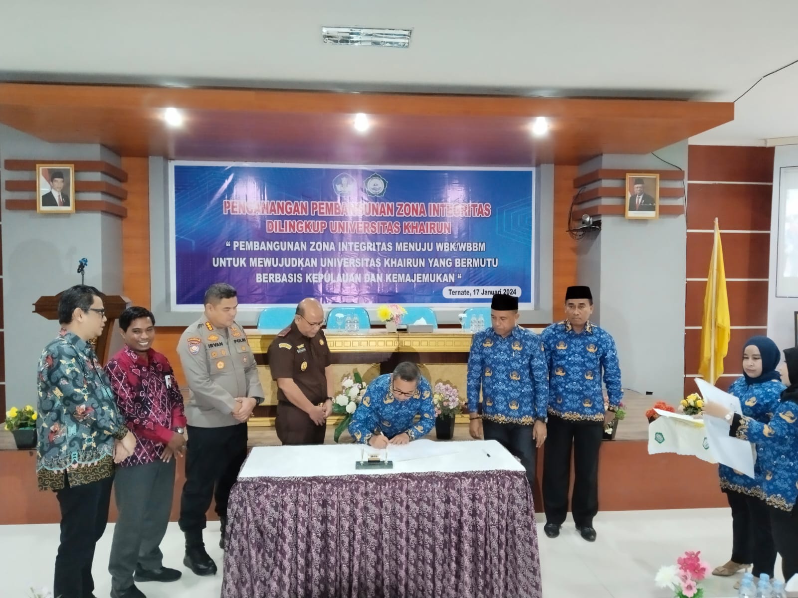 Penandatanganan ZI bertepatan 17 bulan berjalan Januari 2024, sehingga civitas akademika Unkhair memakai seragam Korpri, menurutnya bentuk abdi negara, yang konsisten terhadap semua standar aturan yang berlaku.