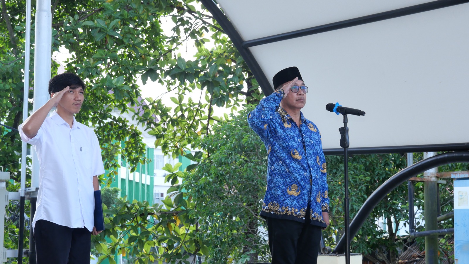 UNKHAIR-Dr. M. Ridha Ajam, M. Hum, Rektor Universitas Khairun (Unkhair), Ternate, pimpin apel gabungan 17 bulan berjalan. ASN, PPPK, dan Tenaga Kontrak hadir berpakaian Korpri, bertempat di pelataran Gedung Rektorat, Kampus II Kecamatan Kota Ternate Selatan, Rabu (17/04/2024).
