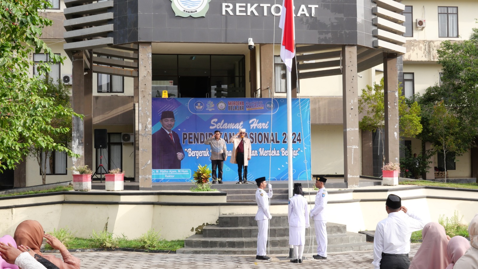 Demikian pidato Mendikbudristek, disampaikan Rektor, Dr. M. Ridha Ajam, M. Hum, saat bertindak sebagai Inspektur Upacara (IUP) peringatan Hari Pendidikan Nasional (Hardiknas), Kamis, 02 Mei Tahun 2024, bertempat di pelataran Gedung Rektorat, Kampus II Gambesi Kecamatan Kota Ternate Selatan.