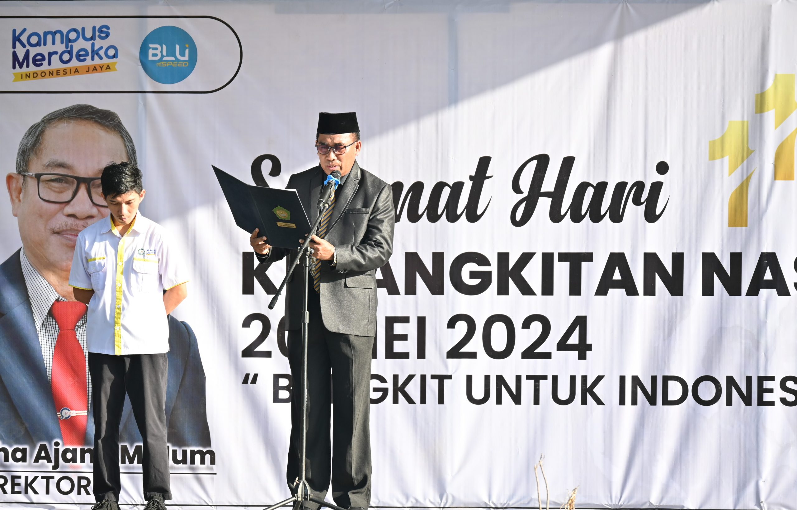 Harkitnas ke-116 tahun 2024, mengusung tema “Bangkit Untuk Indonesia Emas”, dihadiri oleh Wakil Rektor, Bidang Umum, Kepegawaian, dan Keuangan, Unkhair Dr. Abdullah W Jabid, SE., MM, Wakil Rektor, Bidang Kerjasama, Kemahasiswaan, dan Alumni, Abdul Kadir Kamaluddin, SP., M. Si, Kepala BUKK, M. Tahir Abd. Kadir, SH, Kepala BAKP, Nur Dewi Rizka, SP., M. Pd,