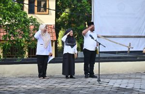 “Tak mungkin berjalan lamban, karena kita berkejaran dengan waktu. Di titik inilah, seluruh potensi sumber daya alam (SDA), bonus demografi, potensi transformasi digital menjadi modal dasar menuju Indonesia Emas 2045, ” tutup Warek membacakan sambutan Menkominfo RI. (Tim Humas) Foto; Fadly dan Fai.