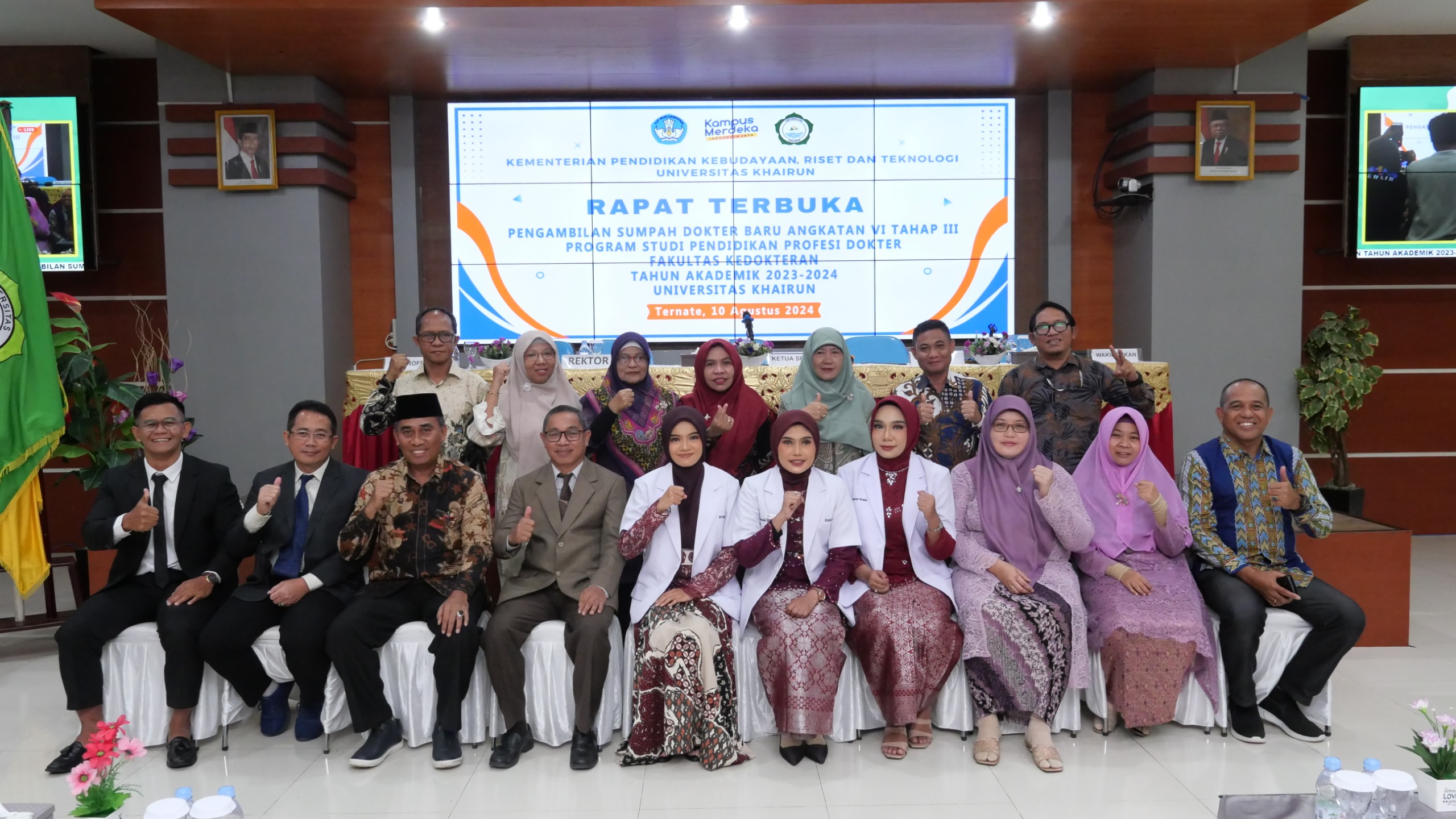 UNKHAIR–Fakultas Kedokteran Universitas Khairun (Unkhair), Ternate kembali angkat sumpah ke tiga dokter baru periode ke-VI tahun akademik 2023/2024.