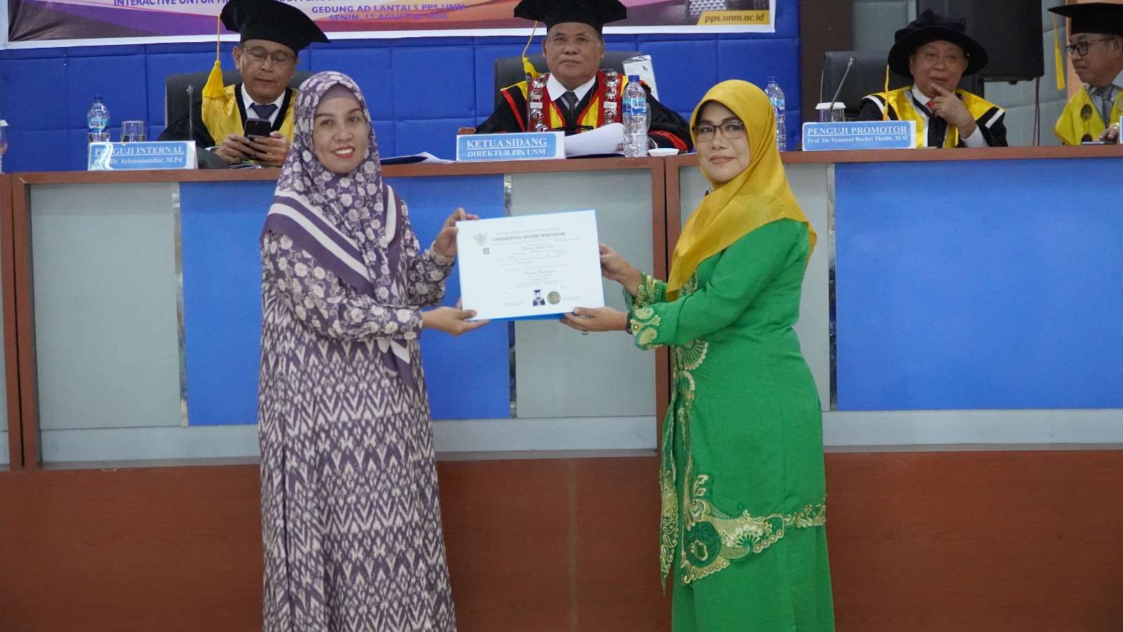 di Universitas Negeri Makassar (UNM). Sidang promosi berlangsung di Gedung AD PPs UNM, Senin (12/8/2024).