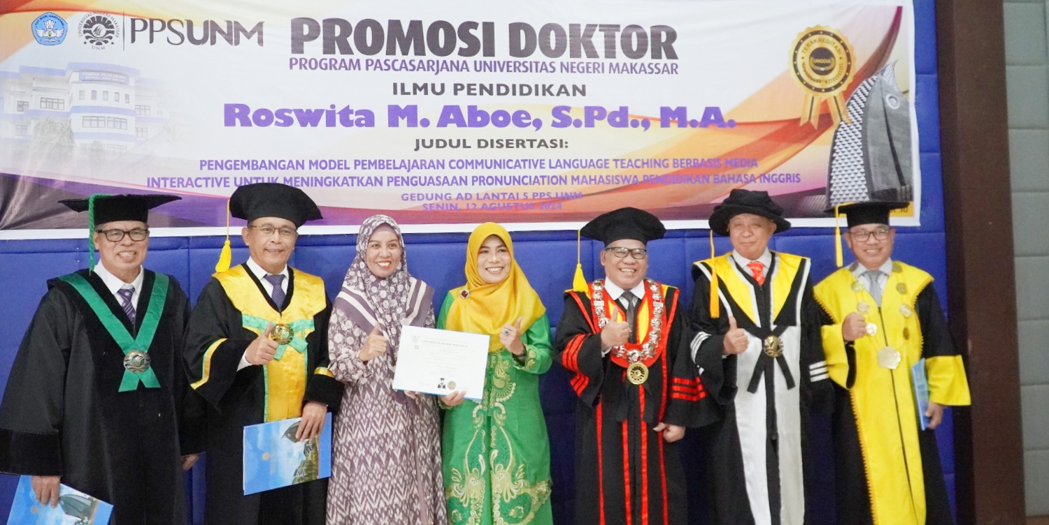 Hasil promosi doktor tersebut, Dr. Roswita M Aboe, S. Pd, MA mendapatkan predikat sangat memuaskan dari para penguji, sehingga mencatatkan doktor ke 1.962 di lingkup PPs Universitas Negeri Makassar, dan doktor 275 pada Program Studi (Prodi) Ilmu Pendidikan.