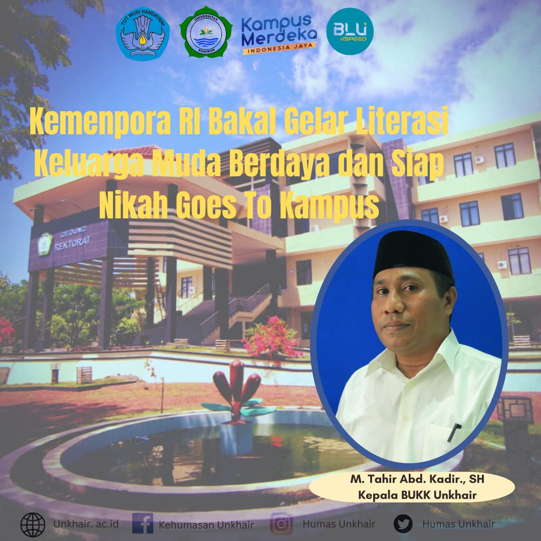 UNKHAIR–Melalui Asisten Deputi Kepemimpinan Pemuda Kementerian Pemuda dan Olahraga Republik Indonesia (Kemenpora RI) bakal menggelar program literasi kualitas ketahanan Keluarga Muda Berdaya dan Siap Nikah Goes to Campus.