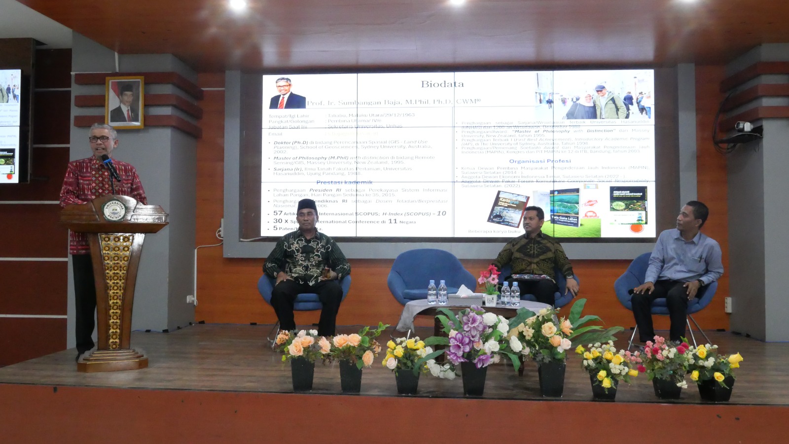 Sekretaris Universitas Hasanuddin, Prof. Ir. Sumbangan Baja, M.Phil, Ph.D, CWM, dalam paparannya, menekankan generasi emas sesuai visi Indonesia emas 2045 mampu di wujudkan dengan beberapa karakteristik.