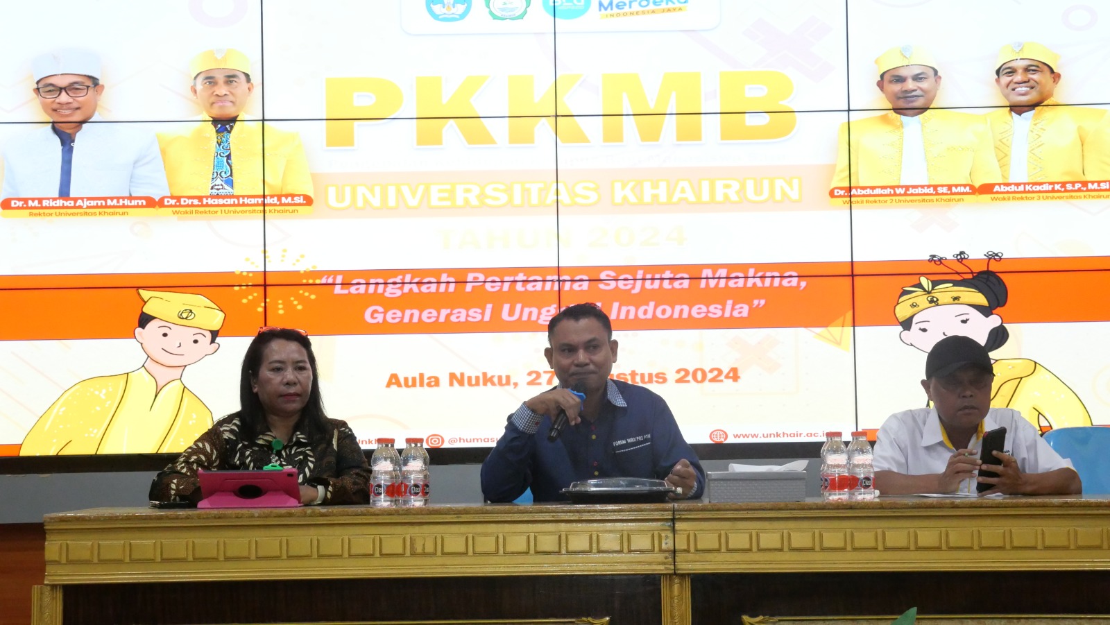 PKKMB hari ke dua sekaligus penutupan seluruh rangkaian kegiatan PKKMB tingkat universitas. Selanjutnya, Rabu 28 hingga 29 Agustus diadakan PKKMB pada delapan fakultas di lingkungan Universitas Khairun.