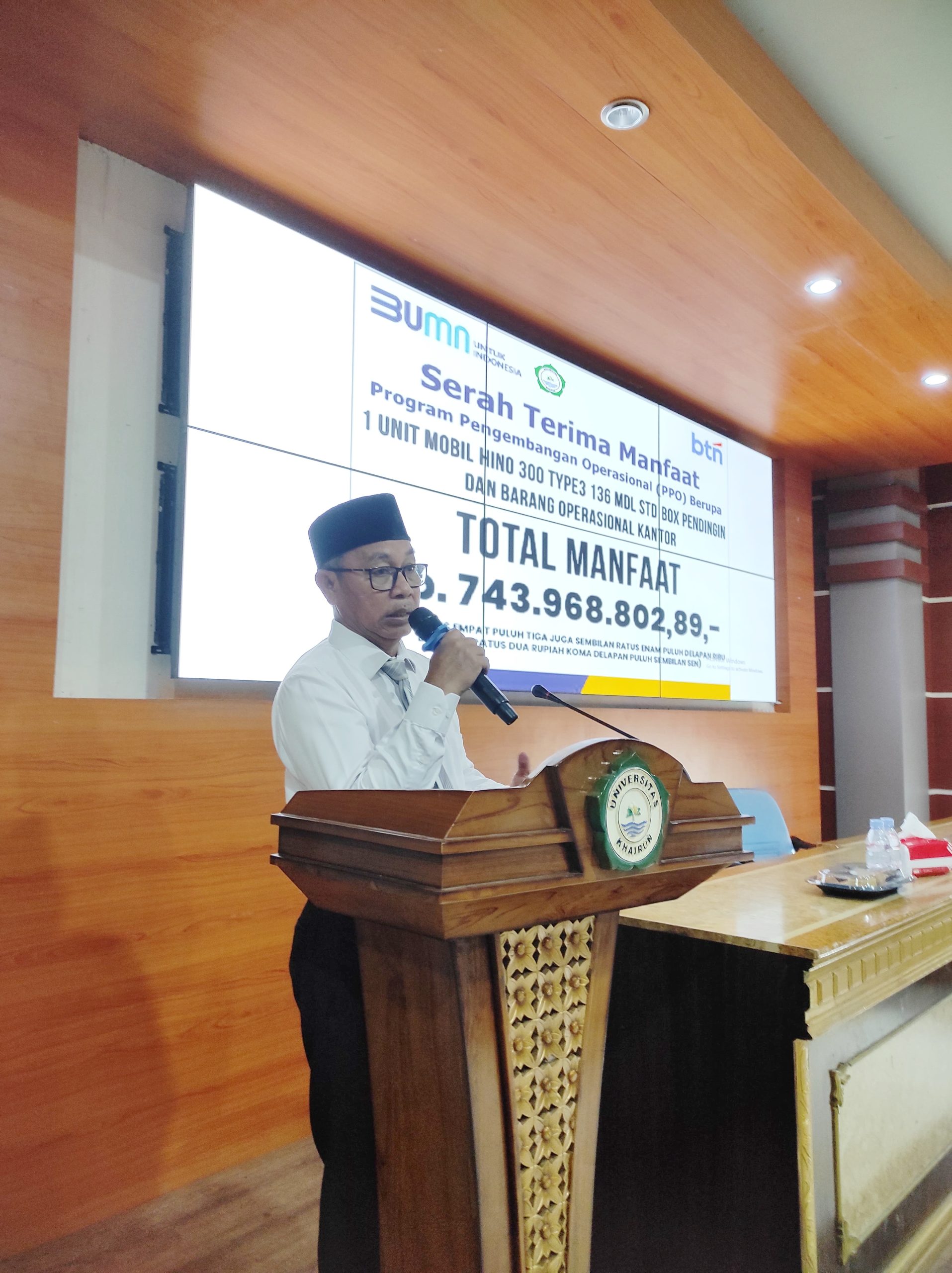 Rektor Unkhair, Dr. M. Ridha Ajam, M. Hum, mengungkapkan rasa syukur, dan apresiasinya atas bantuan yang diberikan oleh BTN.