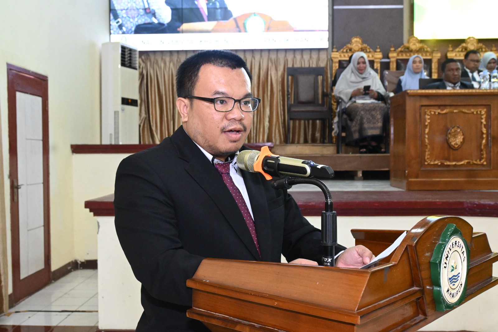 Pengukuhan ini berlangsung secara virtual di Aula Banau, Kampus I Unkhair, Akehuda Kota Ternate Utara, terdiri dari 285 peserta hadir secara langsung dan 144 peserta mengikuti secara daring.