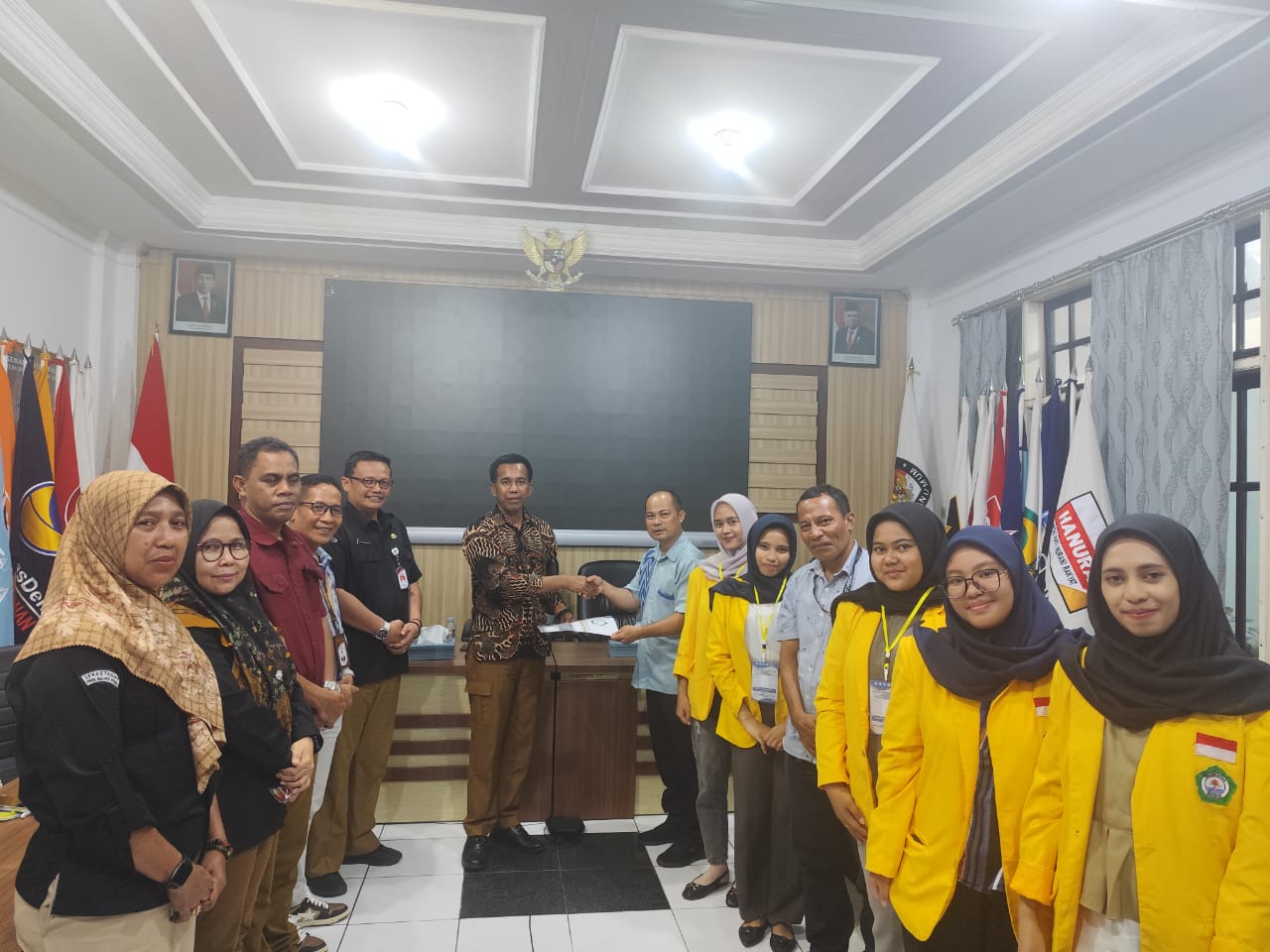 Ketua Tim Gugus MBKM FEB Unkhair, Muhammad Thahrim, SE., M.Si, secara resmi menyerahkan mahasiswa peserta program MBKM kepada Ketua KPU Provinsi Maluku Utara, Mohtar Alting. Berlangsung di Sekretariat KPU Malut, Rabu (18/9/2024).
