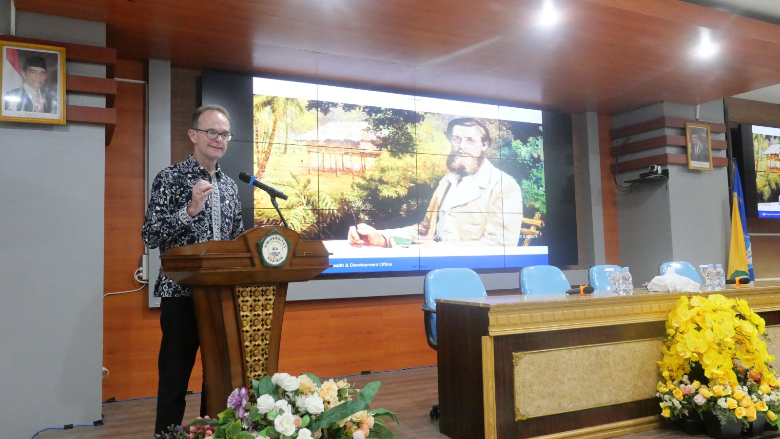 Duta Besar Inggris, Dominic Jermey, dalam kuliahnya menyampaikan hubungan erat antara Inggris dan Indonesia, khususnya Maluku Utara, melalui warisan Wallace.