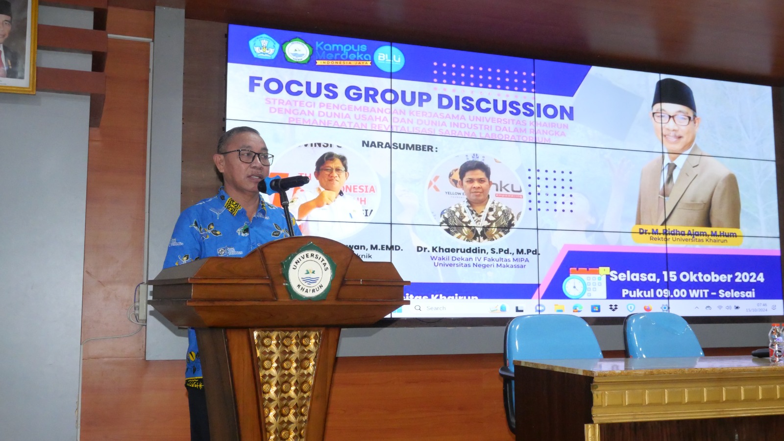 Rektor Unkhair, Dr. M. Ridha Ajam, M.Hum, menyampaikan harapannya agar ide-ide yang muncul dalam FGD ini dapat meningkatkan hubungan dengan pihak industri. Tantangan yang dihadapi dalam pengadaan alat laboratorium yang berkualitas, di mana banyak alat harus diimpor dari luar negeri.