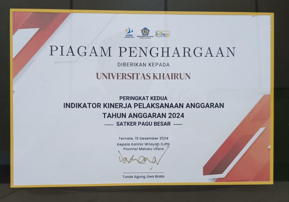 Di penghujung tahun 2024, Unkhair kembali menerima penghargaan membanggakan dari Kantor Perbendaharaan Wilayah Maluku Utara.