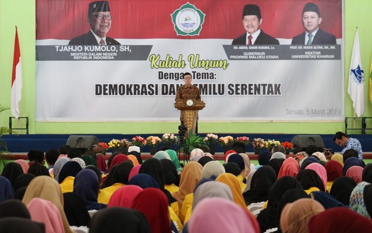 Unkhair.ac.id. Menteri Dalam Negeri RI, Tjahjo Kumolo beri kuliah umum dengan tema “Demokrasi dan Pemilu Serentak 2019 di hadapan seribu Mahasiswa Universitas Khairun kemarin Selasa,…