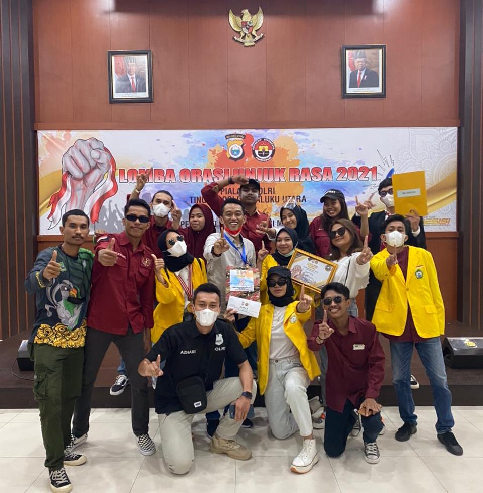 Unkhair. Tim Justitia Fakultas Hukum Universitas Khairun meraih juara 1 lomba Orasi dan Unjuk Rasa tingkat Kepolisian Daerah Maluku Utara Tahun 2021. Lomba yang diselenggarakan oleh Kepolisian Daerah Maluku Utara melalui Bidang Humas ini berlangsung di Aula Polda Maluku Utara (Sabtu, 4/12/ 2021).