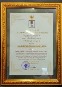 Untuk diketahui Pemerintah Provinsi Maluku Utara memberikan Tanda Kehormatan Daerah Tingkat Utama Kepada Tokoh Pendiri Pendidikan Tinggi di Maluku Utara. Hal ini berdasarkan Surat Keputusan Gubernur Maluku Utara Nomor: 399/KPTS/MU/2022 tertanggal 8 November 2022. Penghargaan diberikan kepada 34 ahli waris tokoh pendiri Universitas Khairun. ke 34 tokoh pendiri Universitas Khairun adalah Sultan Muhammad Djabir Syah, dr. Saleh Sahib, M.S. Djahir, Baharuddin Lopa, M. Adnan Amal, Jakub Mansur, Mursaha, Jasin Muhammad, A.K. Safar, Abdul Samad Abdul Latif, Idrus Hasan, Ibrahim Abas, Said Ammarie, Jasin Bopeng, Karel Tan, Letkol Sugiono, Muhammad Hanafi, Muhammad Nasir, A.R Bahmid, Usman Djama, Nurdin Iskandar Alam, Abdul Kadir Safar, Drs. M. Djen Limatahu, A.R Nada, Ibrahim Saleh, Ibrahim Konoras, Drs. Abdullah Abubakar, Drs. Abdullah Do Umar, Drs. Jusuf Abdurahman, Drs. A.B Andili, Drs. Sjarifuddin Do Mustafa, Drs. Jusuf Abaio, Abdul Hamid Hasan, Hasna Taher. (humas) Penulis : Suratin / Editor : Polo/ Foto : humas