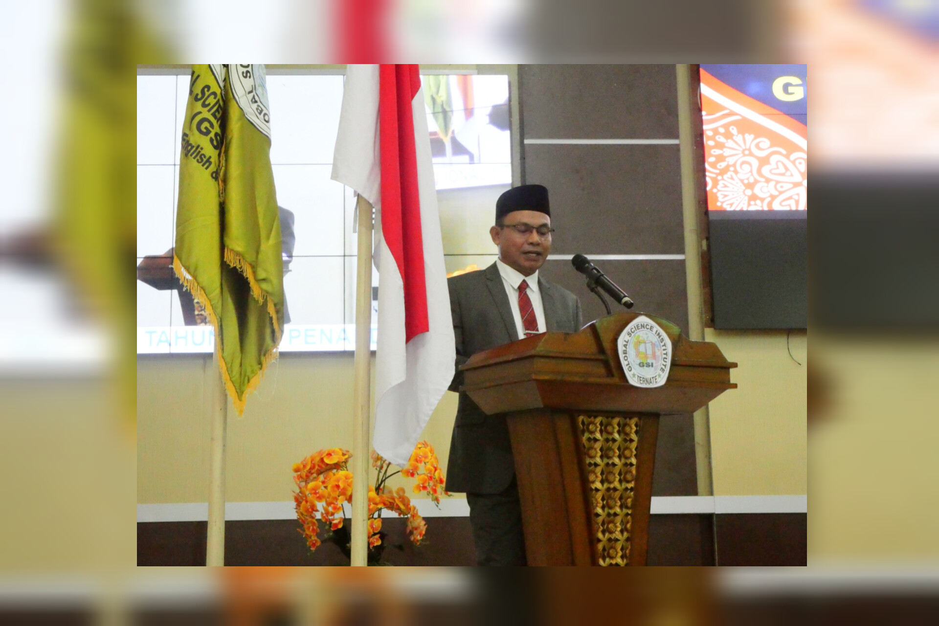 UNKHAIR, Rektor Universitas Khairun (Unkhair) Prof. Dr. Abdullah W. Jabid, SE., MM, tampil. menyampaikan orasi ilmiah pada acara wisuda program komputer profesional (PKP) Global Science Institute (GSI) Ternate, Angkatan 24 Tahun Akademik 2024/2025, Sabtu (18/10).