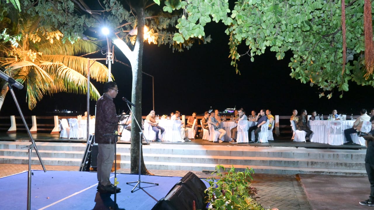Welcome Dinner yang dipusatkan di kawasan Taman Nukila, Jl. Sultan M. Iskandar Djabir, Kelurahan Gamalama, Kota Ternate, berlangsung meriah dalam suasana penuh kehangatan. Cahaya lampu taman yang berpadu dengan semilir angin pantai menghadirkan nuansa akrab di antara para tamu.*