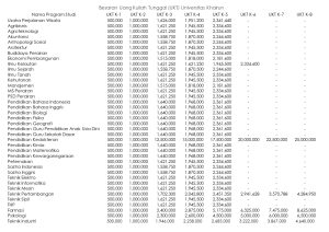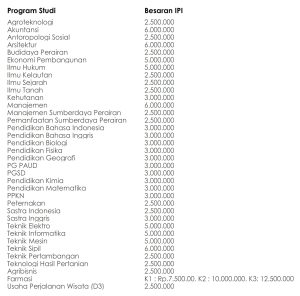 Berikut besaran Uang Kuliah Tunggal Universitas Khairun :